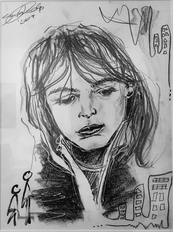 Esquisse d'une tache est présentée à la Galerie de la Fonderie Darling ainsi qu'à l'exposition collective Vernissage & Cie à Montréal. Inspirée par son parcours personnel, l'artiste explore au travers de cette collection les différents ''états d'âmes'' du corps féminin. Elle y parle de ses transformations, comme la puberté, la grossesse, la sexualité, ou même le chaos psychologique. Des corps dansants, désirés, entraînés ou même déchirés. C’est l’expression de celui-ci à travers l’espace et le mouvement qui inspire l'artiste. Elle y favorise la ligne libre de contour et l'écriture spontanée, les inscrivant dans un environnement en tant que croquis.